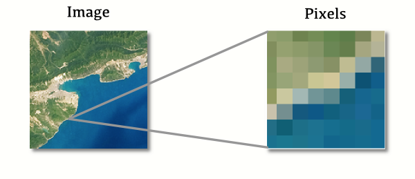 Raster data is used in pictures of the Earth, like those taken by satellites - but that is just the beginning. Pixels don’t need to have colors - instead, each pixel can have a number that represents height and the raster data as a whole stores elevation data. Or pixels can store temperature or reflection data and be useful for environmental work.